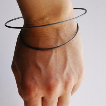Sterling Silver, in black rhodium plating (dark grey result), yellow gold plating, mat